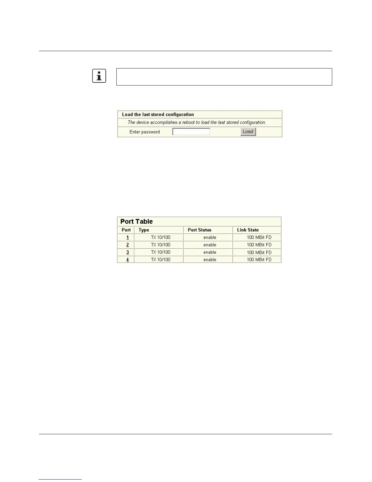 Port Table Overview of all available ports. Clicking on the relevant port number opens a port-specific