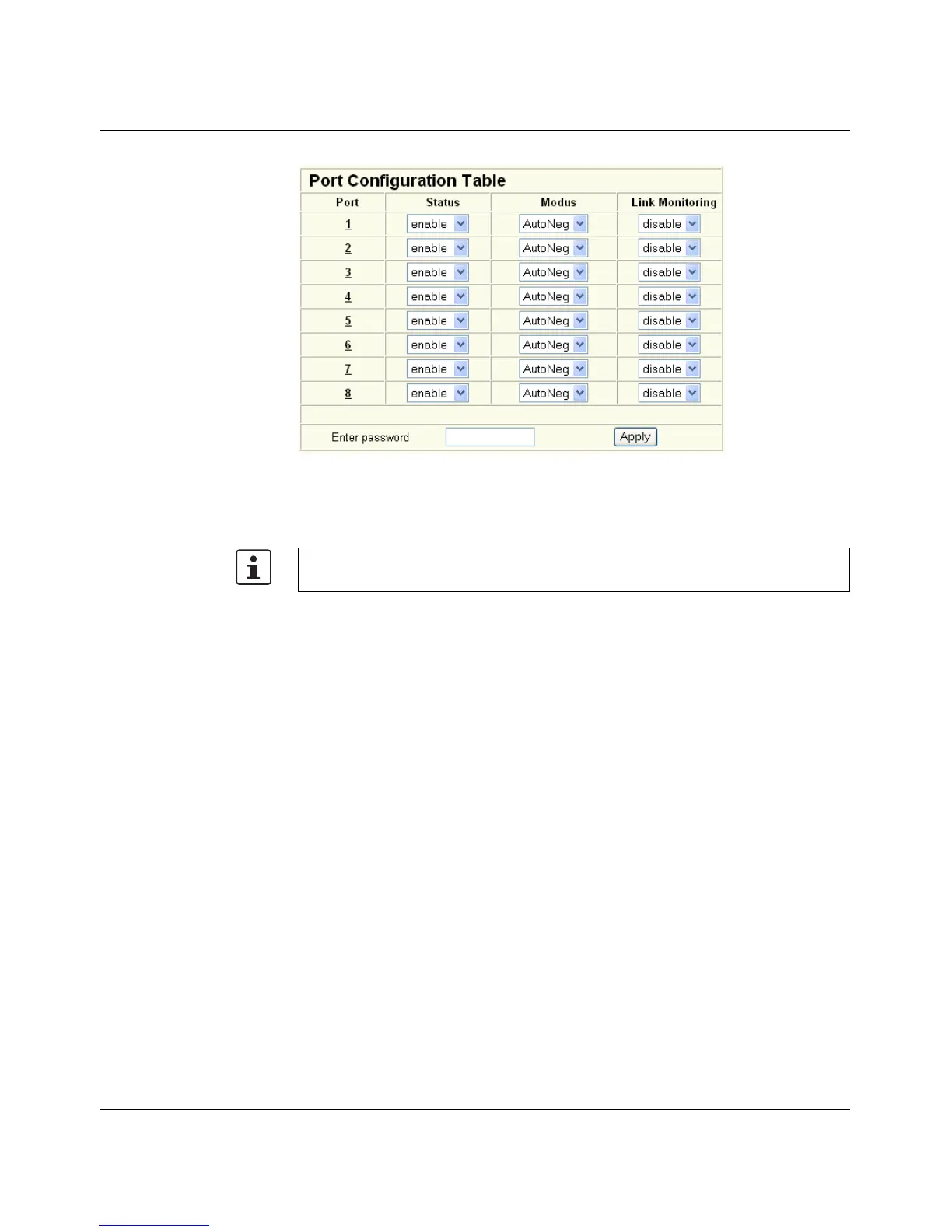 Figure 3-18 "Port Configuration Table" web page