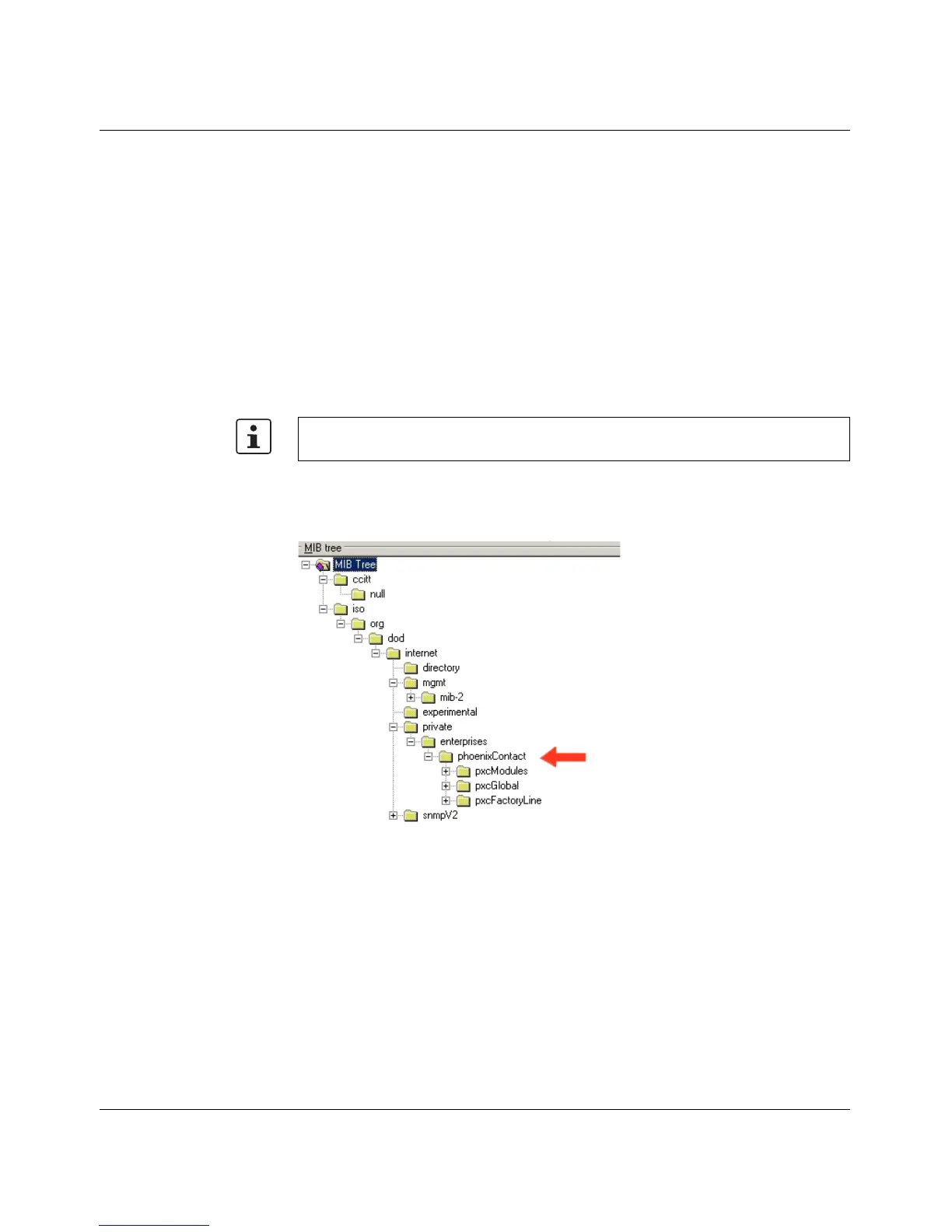 The private MIB from Phoenix Contact is integrated in the MIB tree as follows (see red
