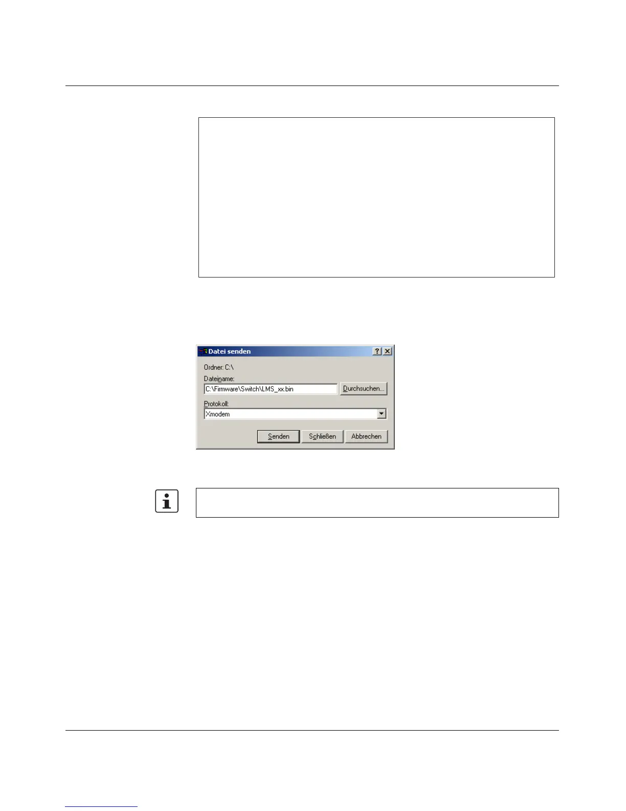 Make sure that the protocol is set to "Xmodem", otherwise the transmission will fail.
