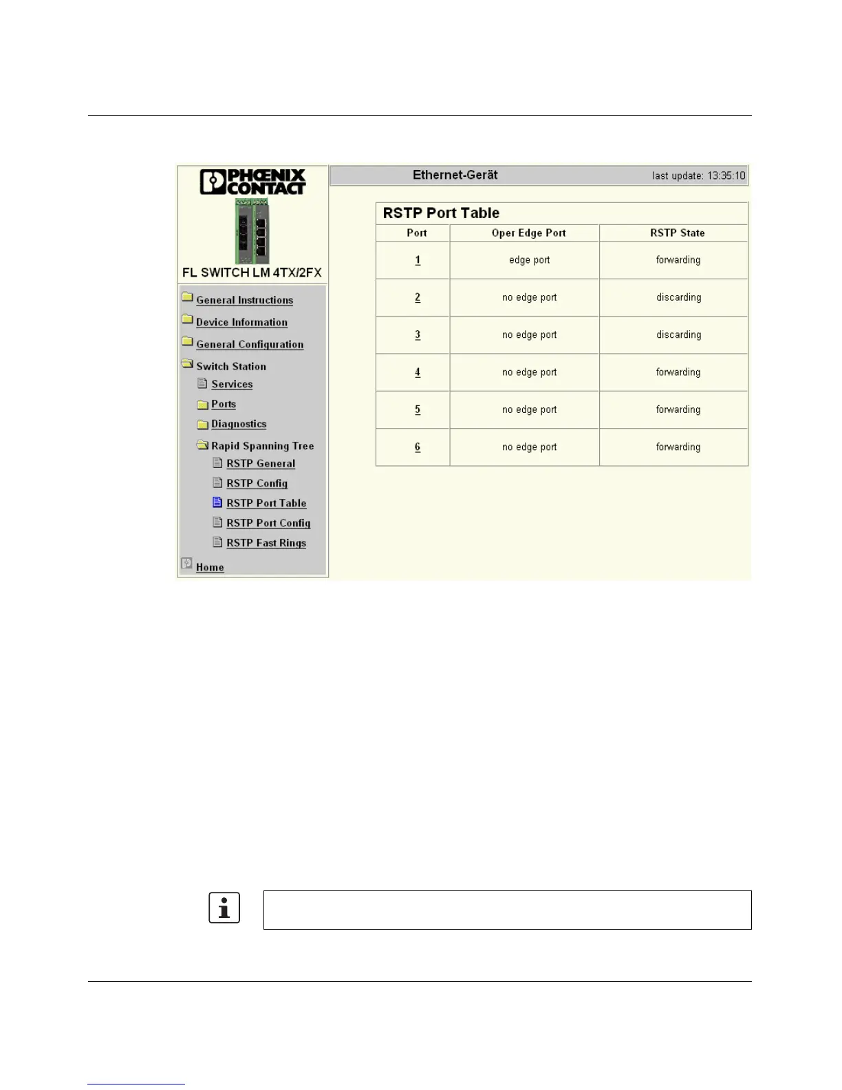 Figure 4-5 "RSTP Port Table" web page