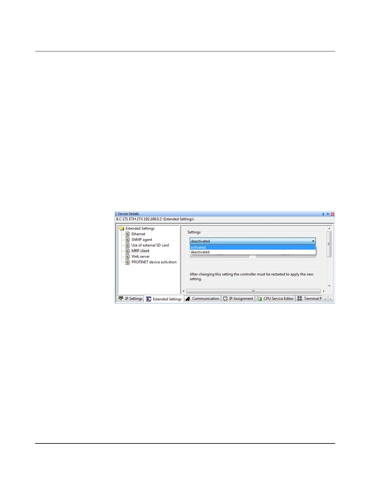 • Select the "Extended Settings" tab in the "Device Details" window.