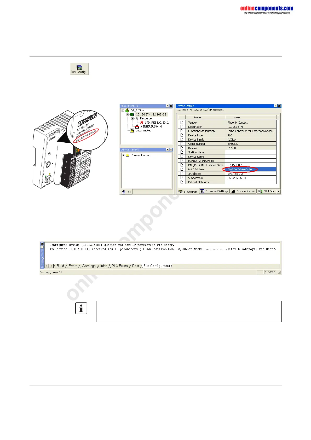 The following message appears in the message window in the "Bus Configurator" tab.