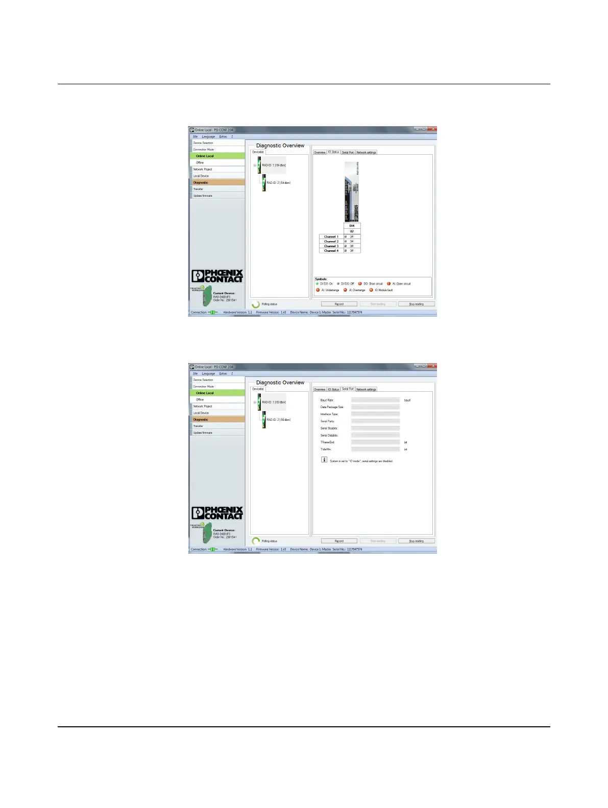 Figure 11-6 PSI-CONF software: Diagnostic, Serial Port