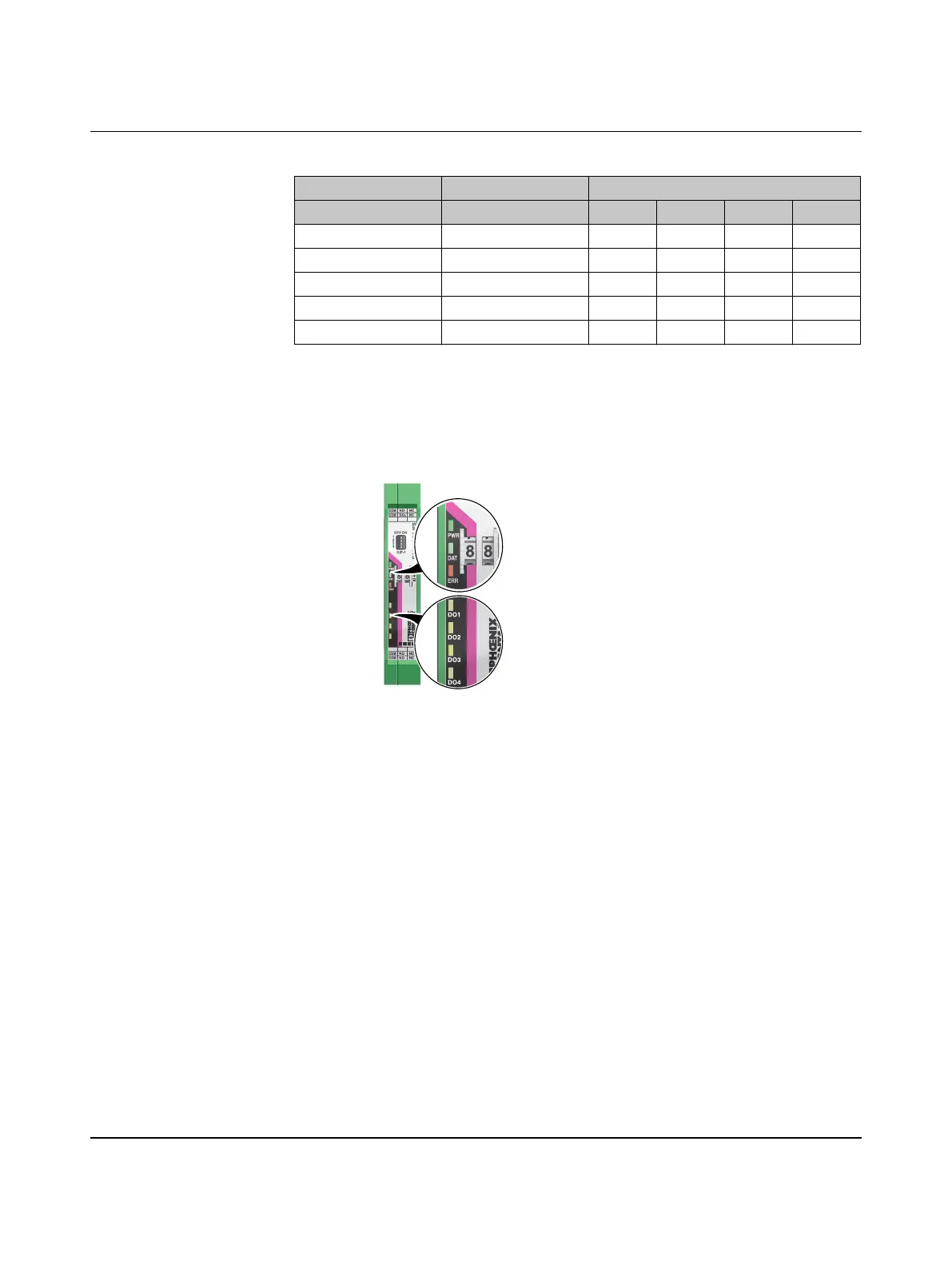 The RAD-DOR4-IFS I/O extension module uses a total of seven LEDs to indicate the