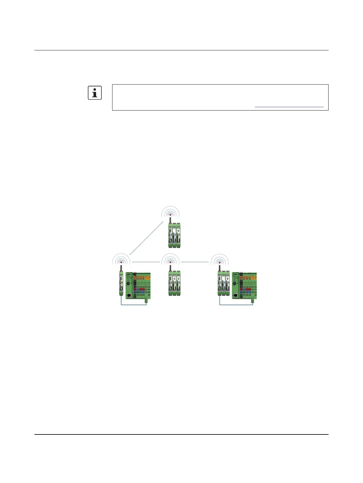 You can connect I/O extension modules to each wireless device in the network. A wireless