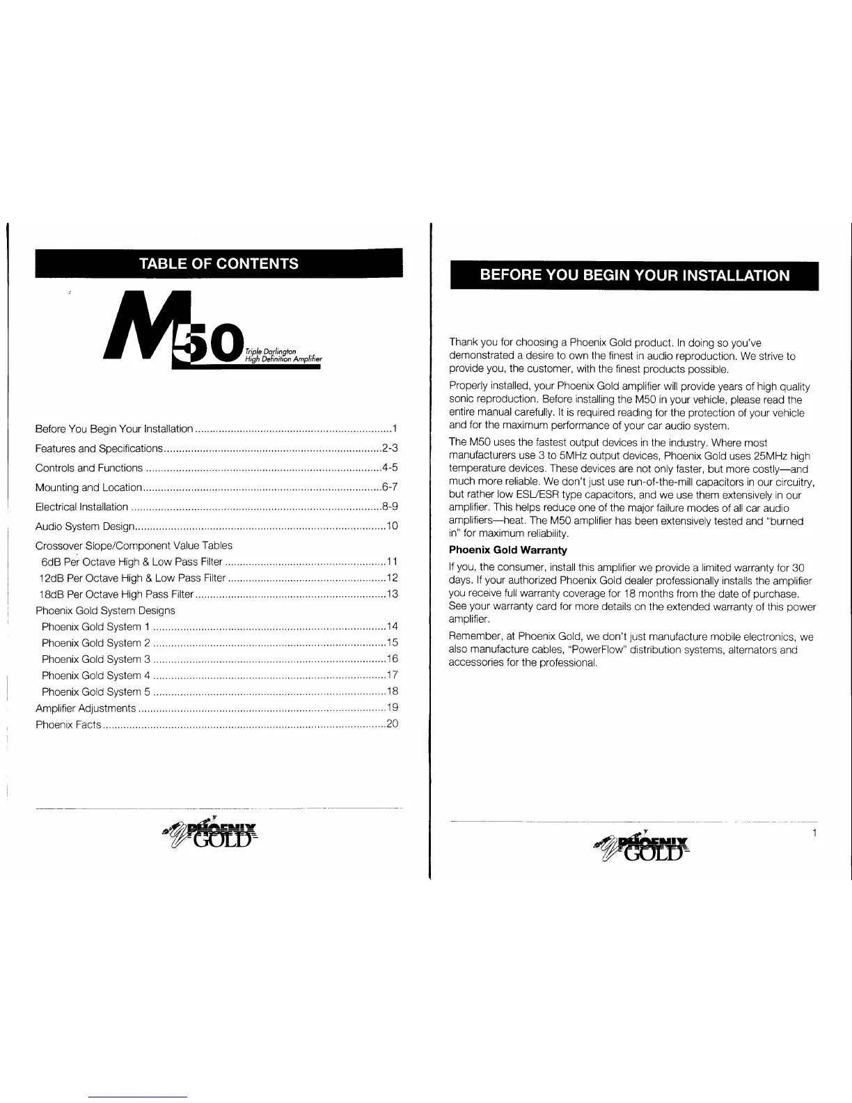 Phoenix Gold M50 - Before You Begin Your Installation; Phoenix Facts