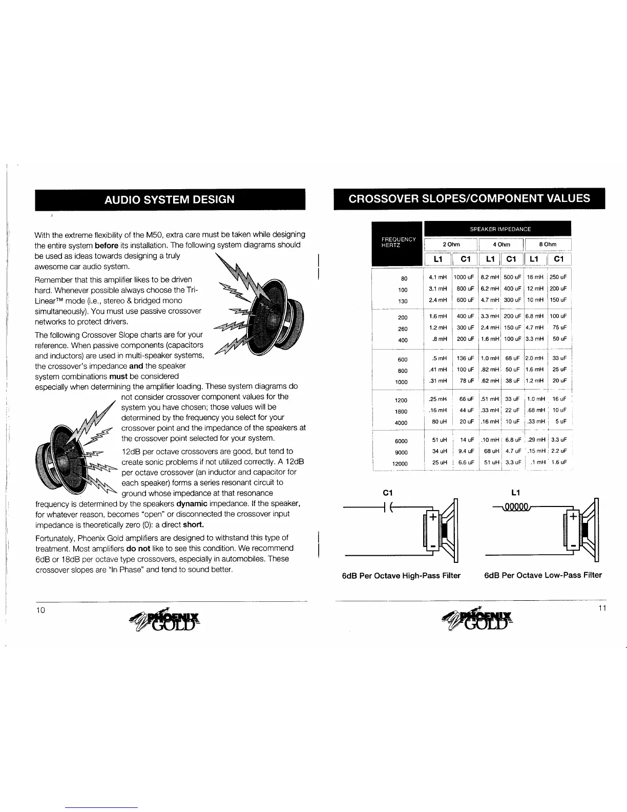 Phoenix Gold M50 - Audio System Design Principles; Crossover Component Values
