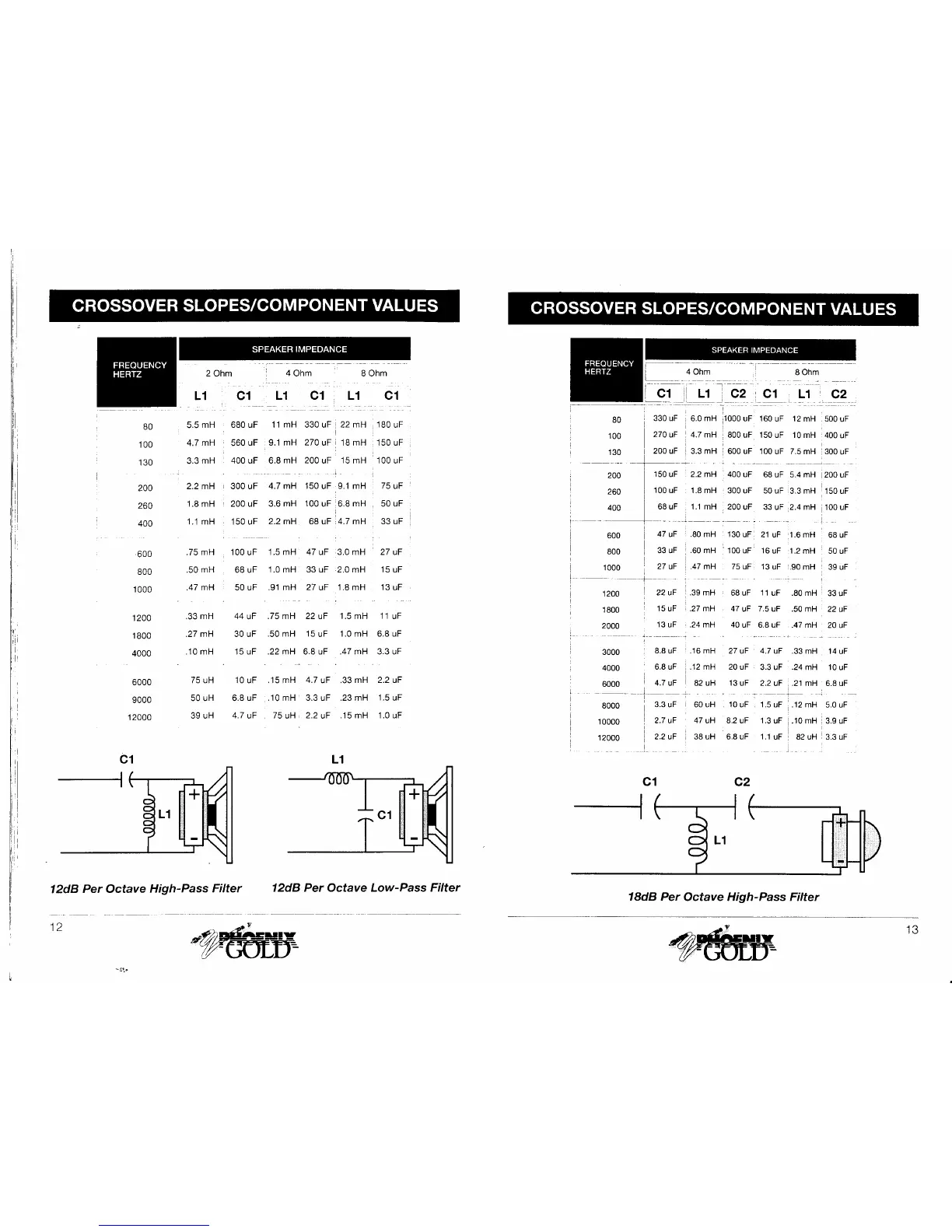 Phoenix Gold M50 - 12 Db Per Octave High-Pass Filter; 12 Db Per Octave Low-Pass Filter; 18 Db Per Octave High-Pass Filter