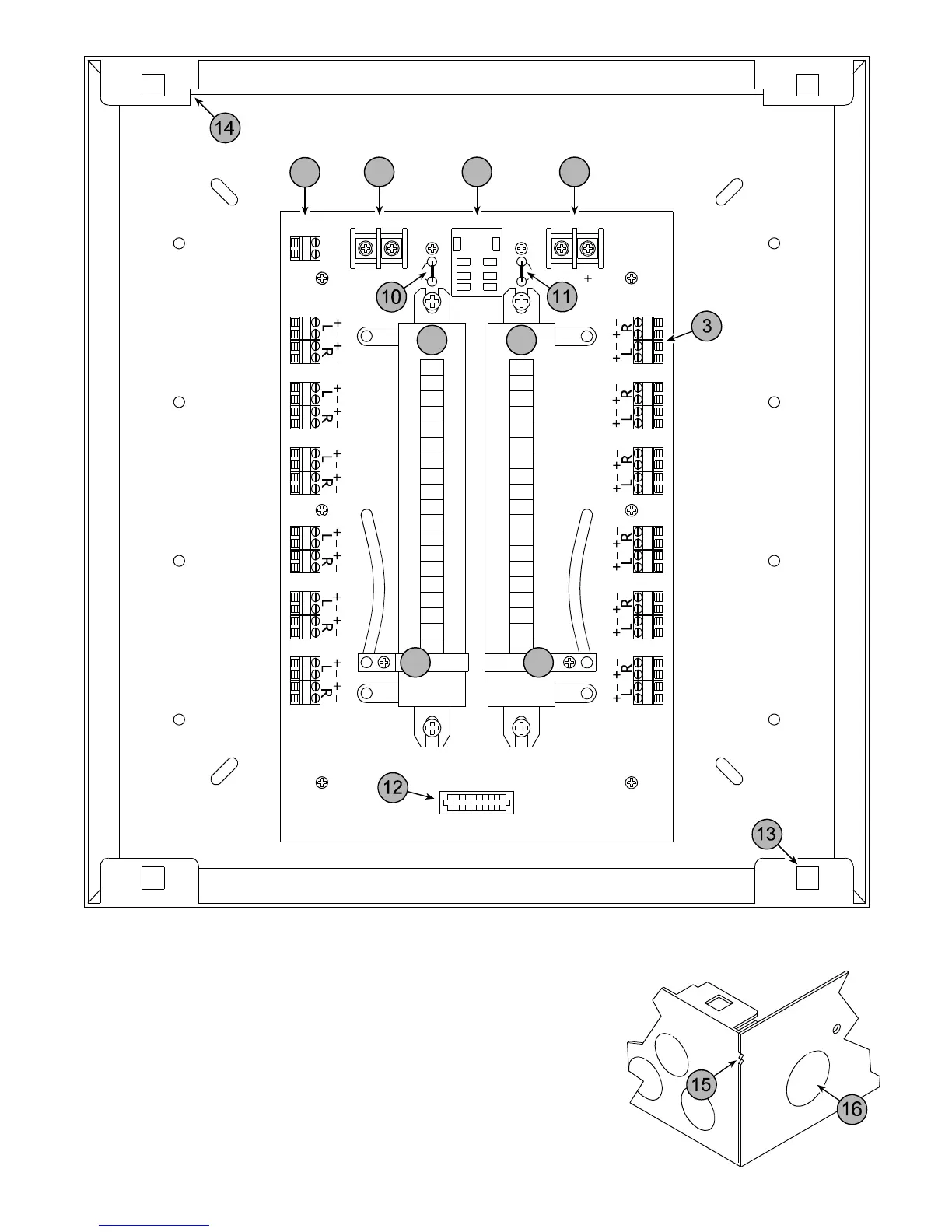 16. Wiring Knockout for the Supplied Snap-in Strain Reliefs