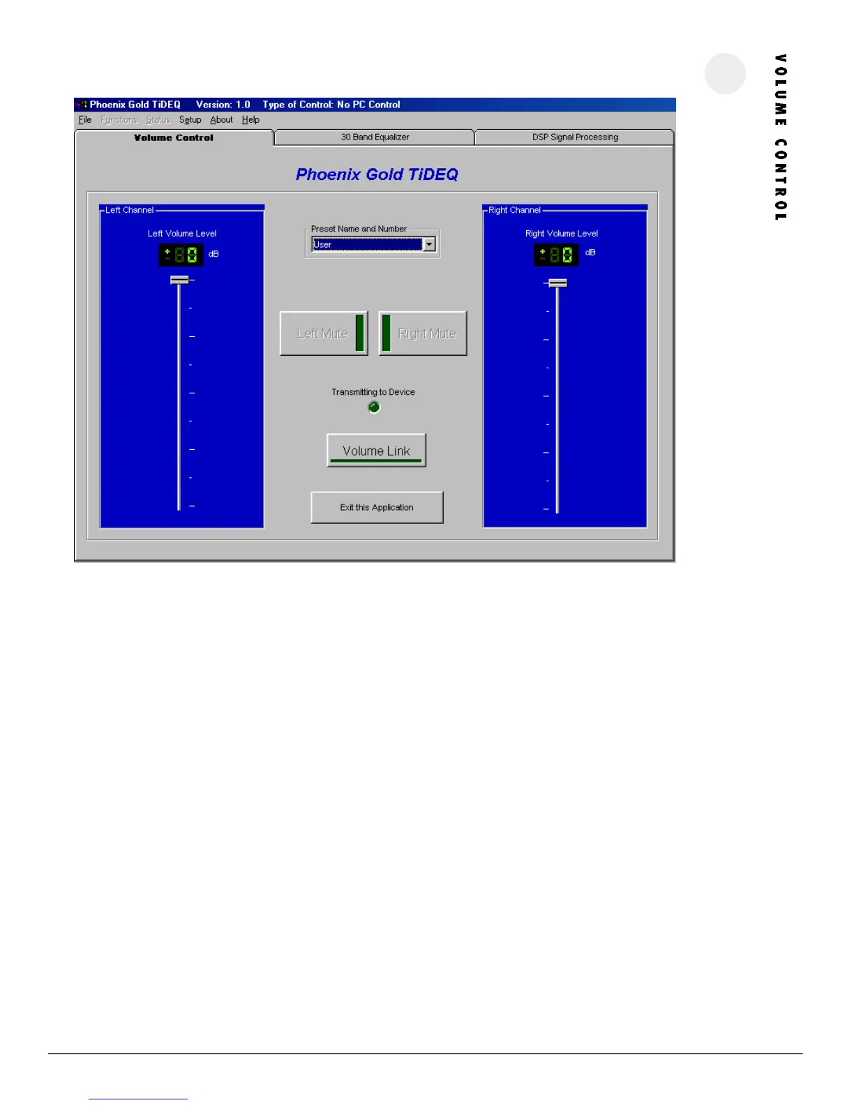 These are used to adjust the overall levels of the equalizer’s outputs. Both sliders can be moved simultaneously by clicking on the Volume Link