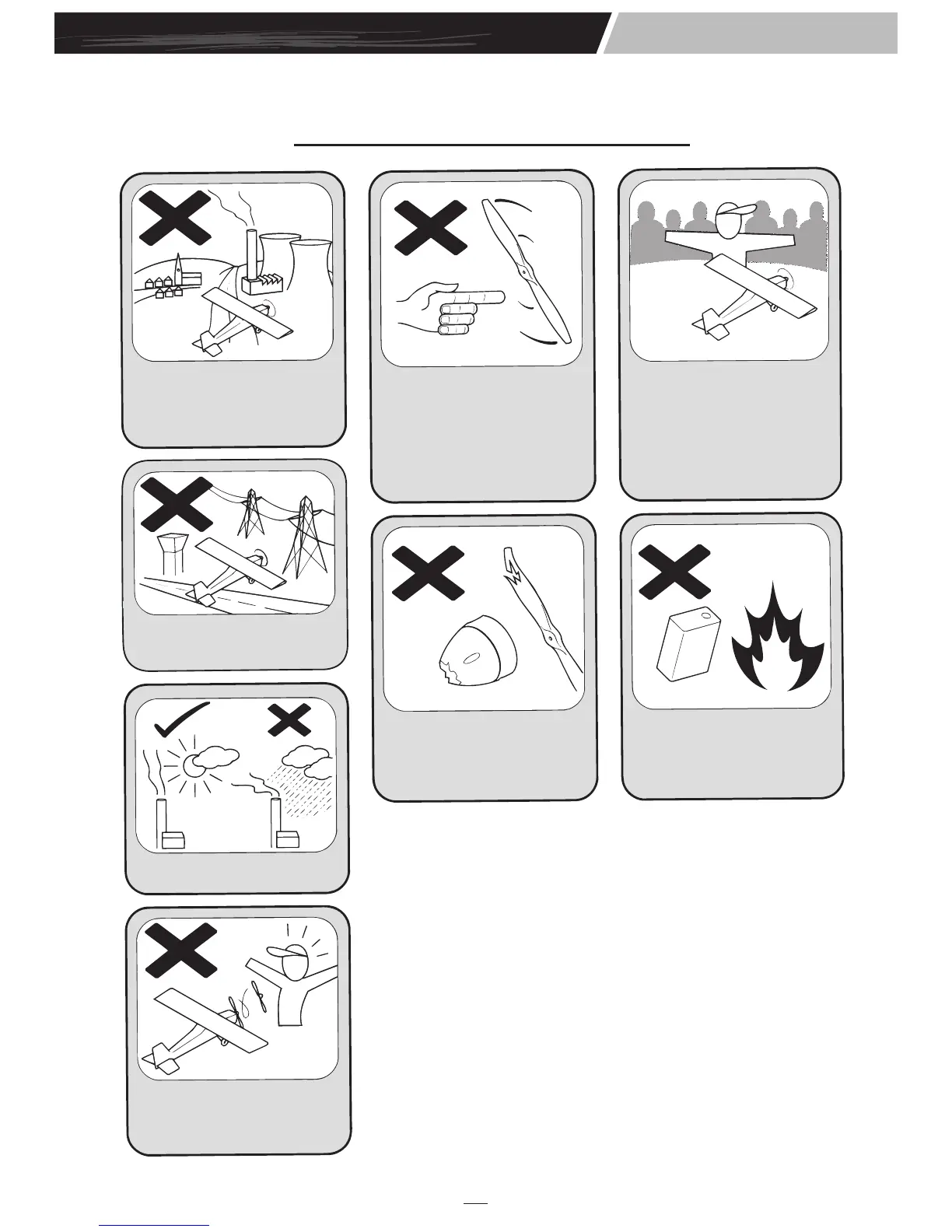 NEVER fly in wet conditions or on