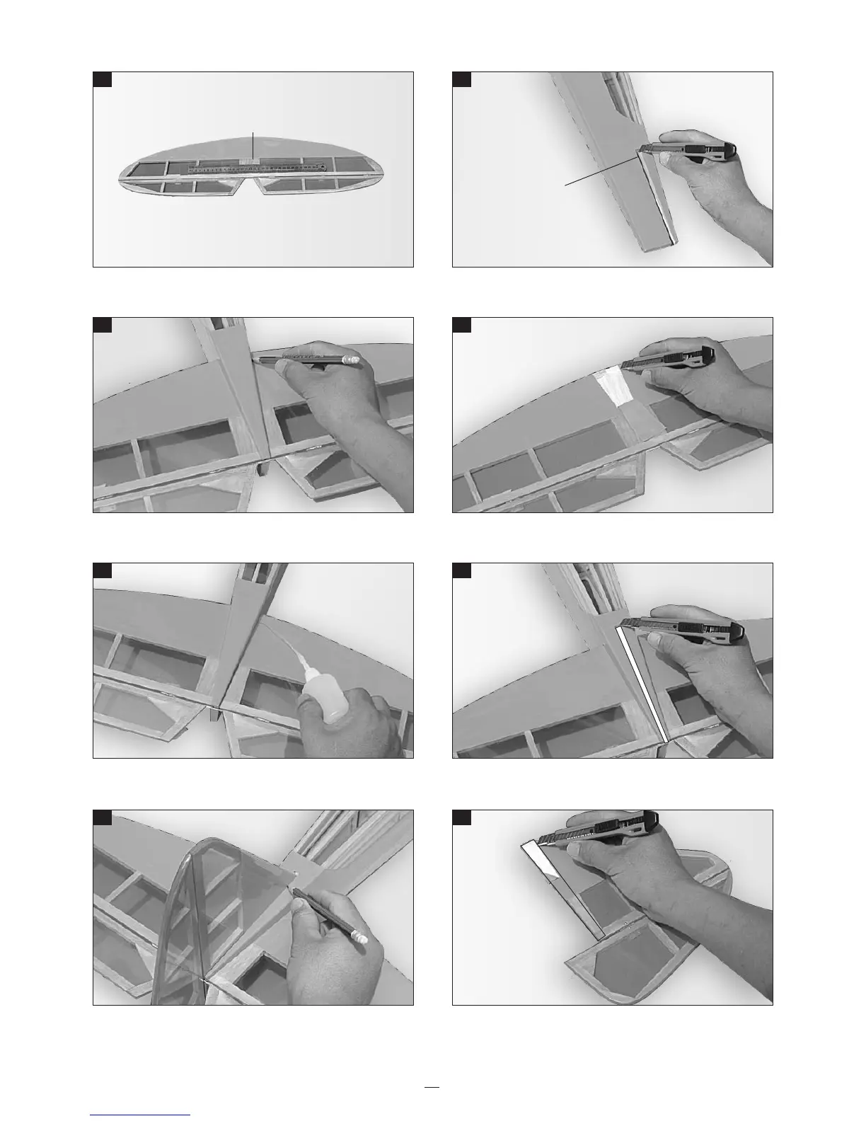 Install the elevator and the rudder servo. Install the elevator and rudder linkages.