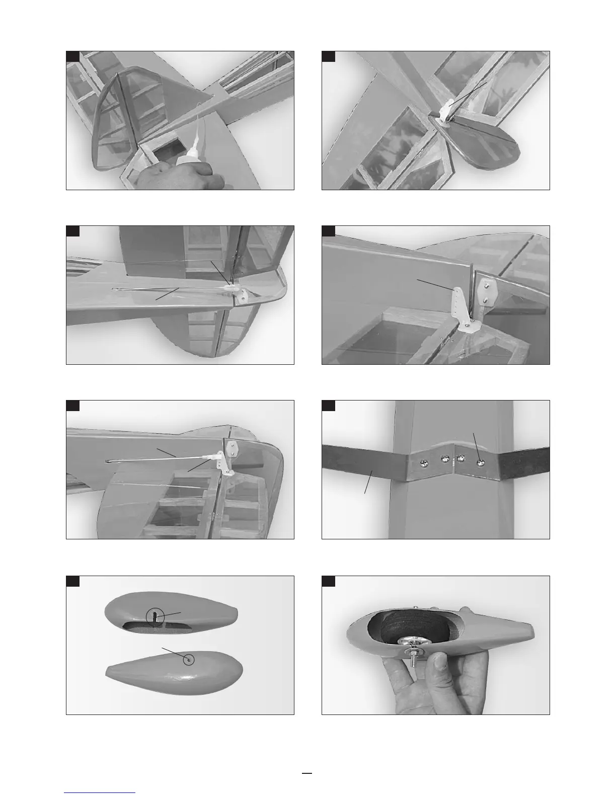 Install the elevator and the rudder servo. Install the elevator and rudder linkages.