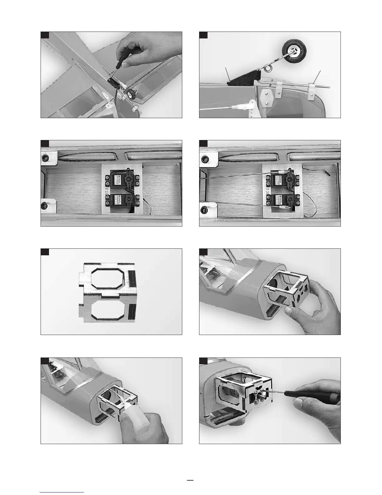 Install the elevator and the rudder servo. Install the elevator and rudder linkages.