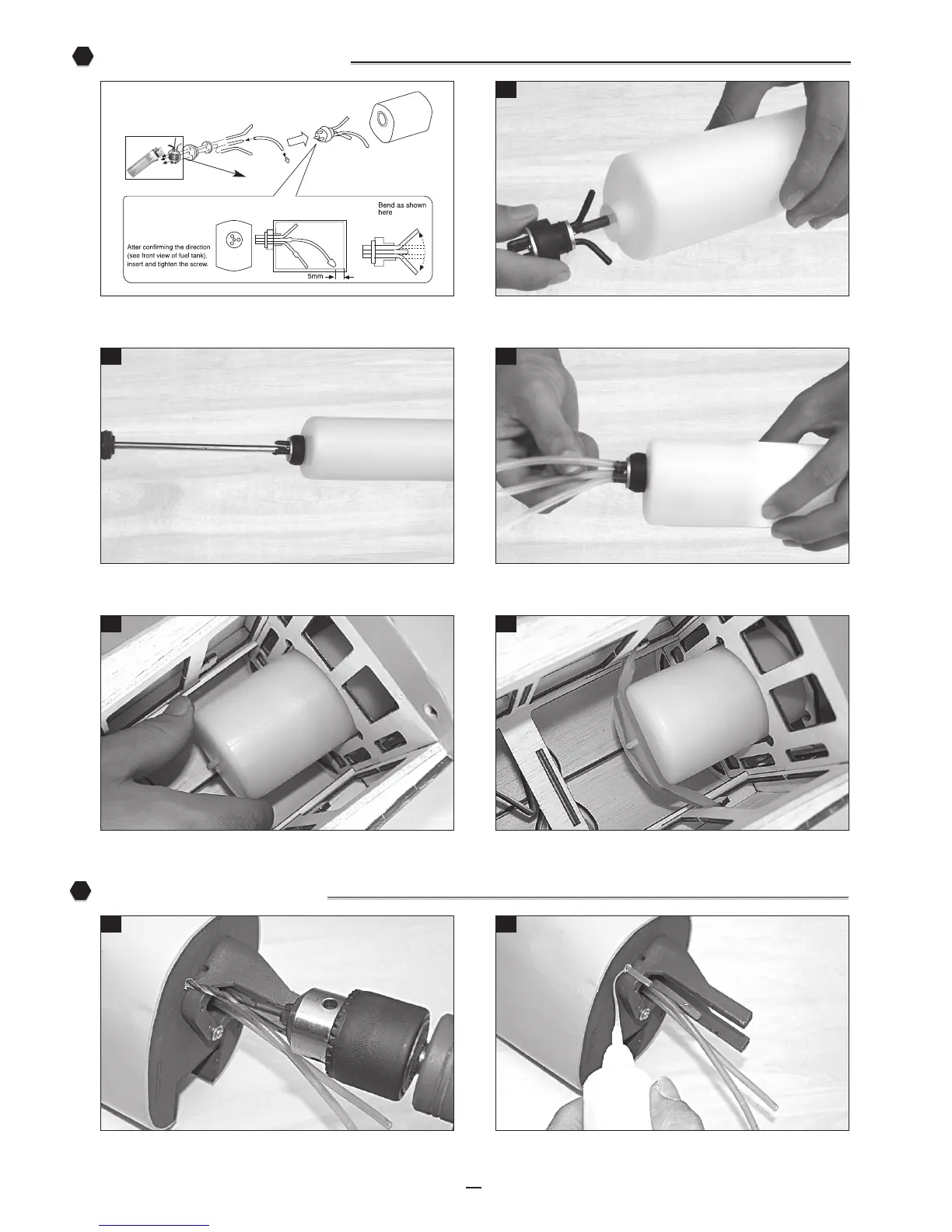 Slide the fuel tank to the fuselage. Secure the fuel tank in place by rubber bank.