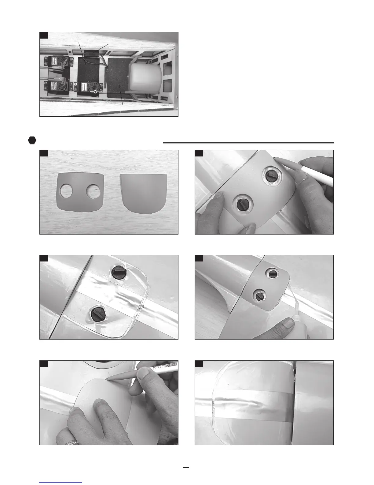 Remove the covering from the bottom of the horizontal. Glue the horizontal and fuselage by epoxy.