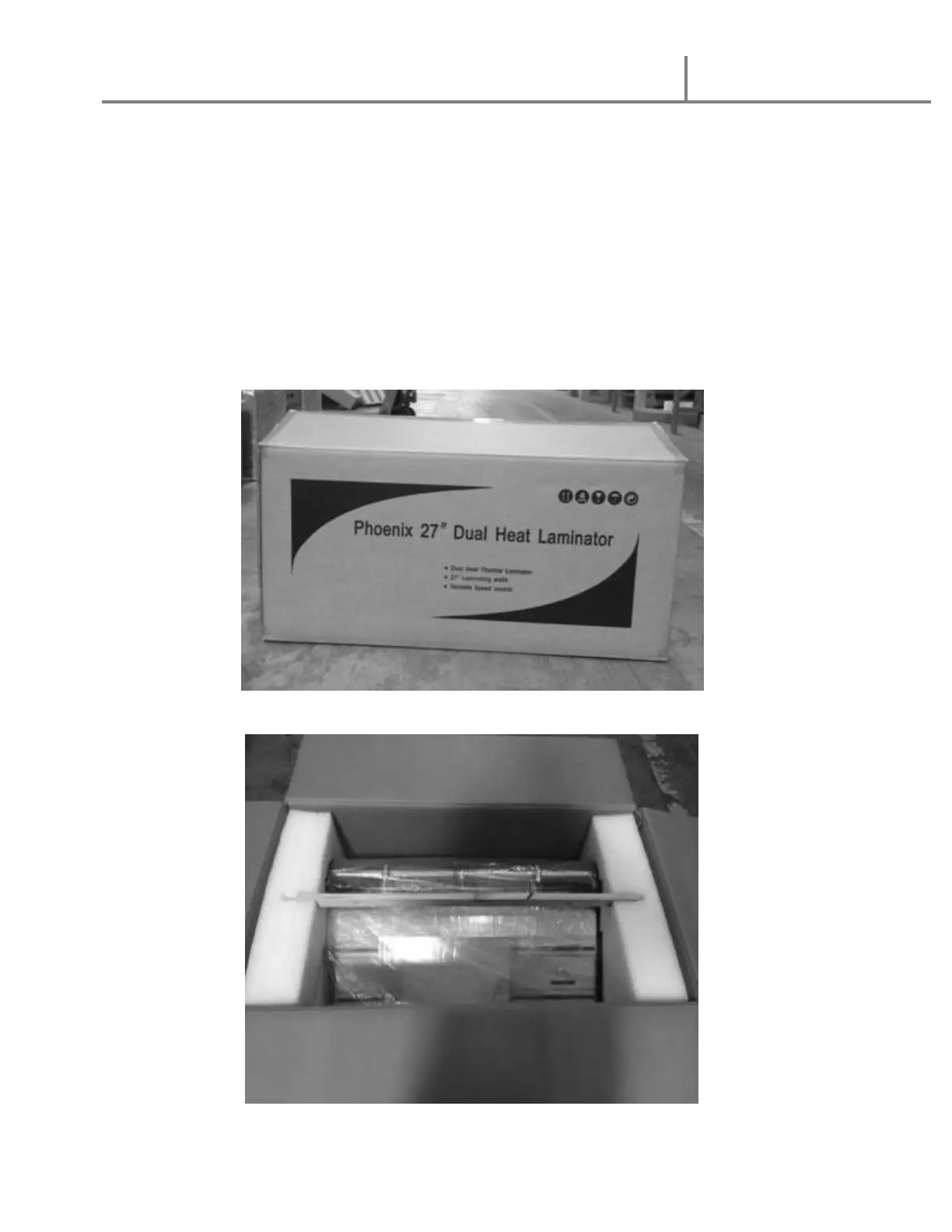 1. Lift machine straight up and out of the box.