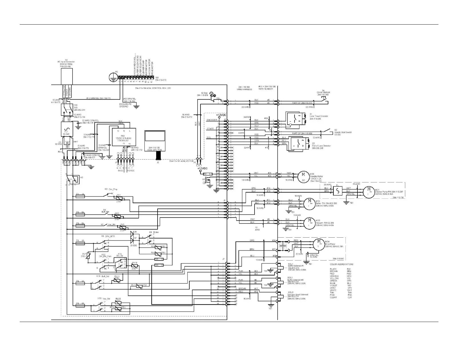 Wiring Diagram 220V Lane Machine P/N 400-294-019
