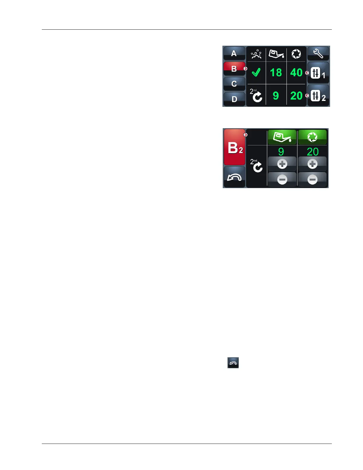 Selecting the "+" under the oiling icon will increase the oiling distance while selecting the "-"