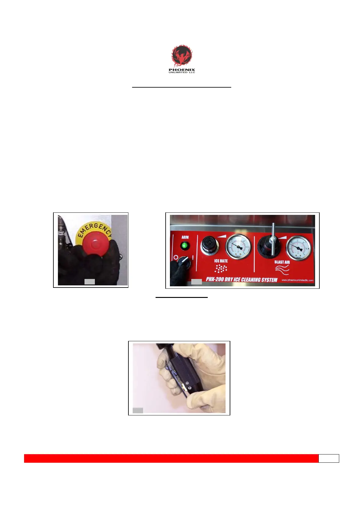(NOTE: The PHX-200 will not arm if the E-STOP button is depressed, safety screen is removed, or