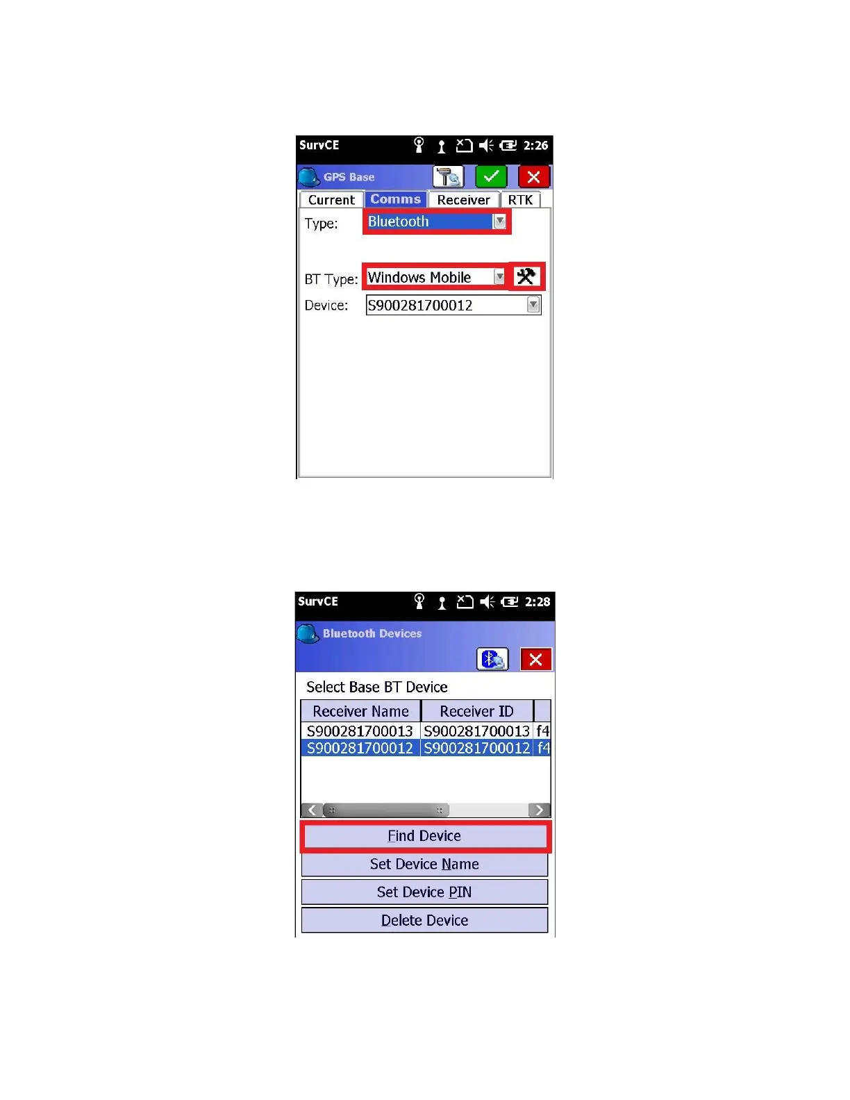 6. Click on the “Comms” tab and set Type to “Bluetooth” and BT Type to “Windows Mobile”