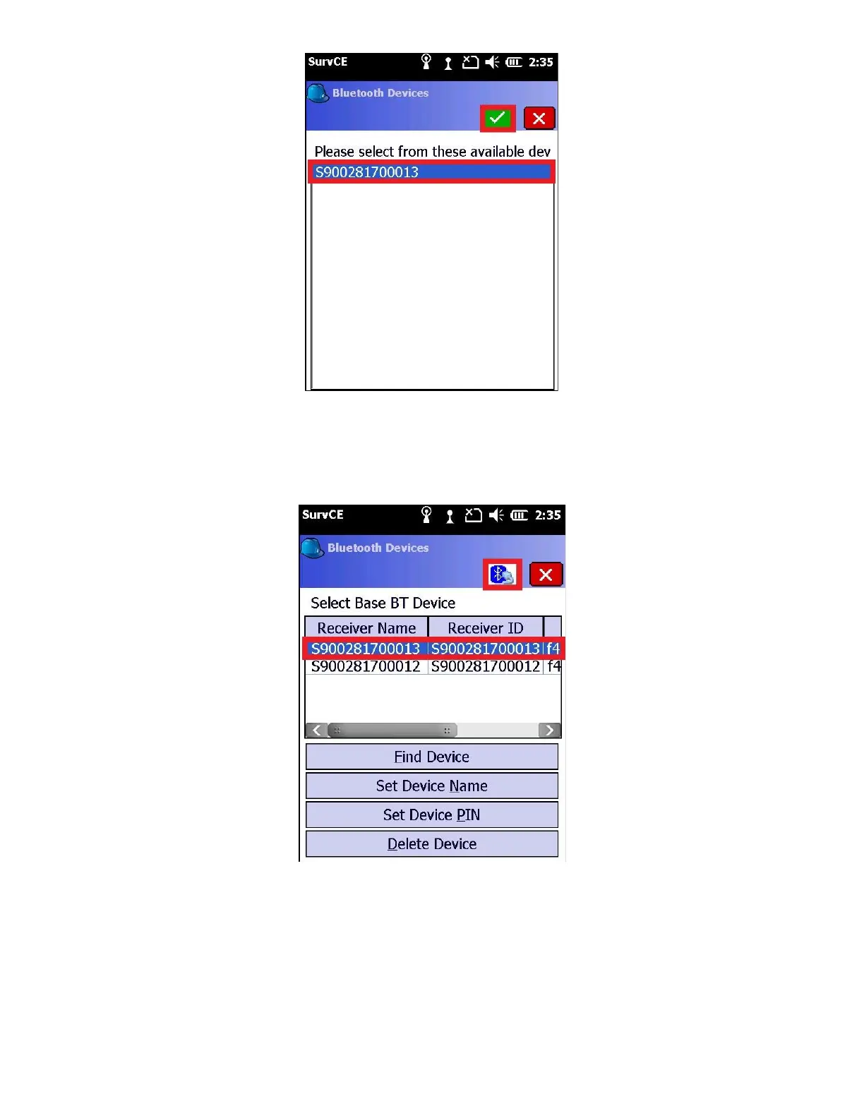 Make sure the correct Receiver SN is selected and click on the Bluetooth Connect button (it looks like a bluetooth