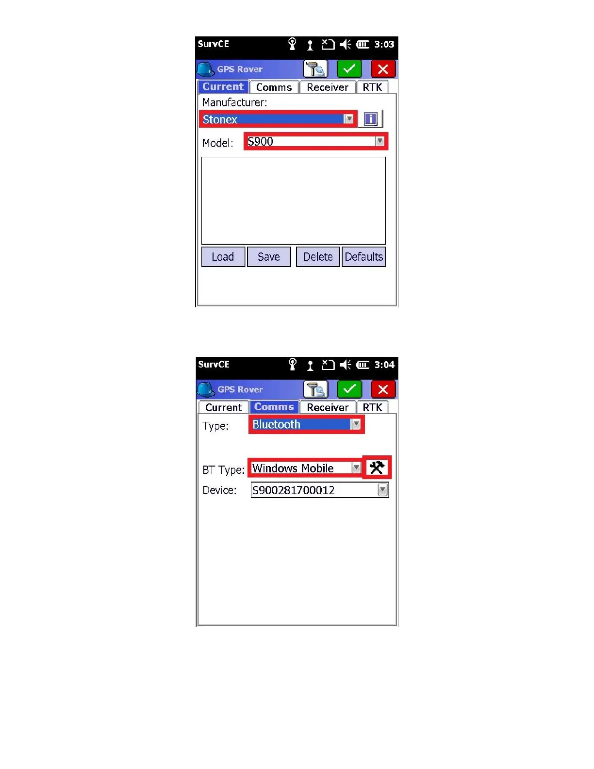 4. Select the “Comms” tab and set Type to “Bluetooth” and BT Type to “Windows Mobile”