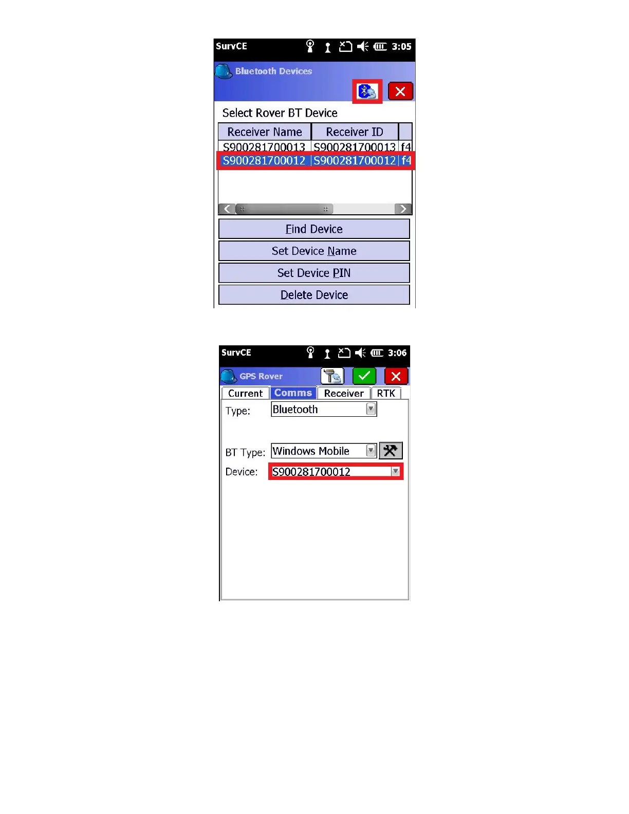 SurvCE should now show the selected head as the “Device”