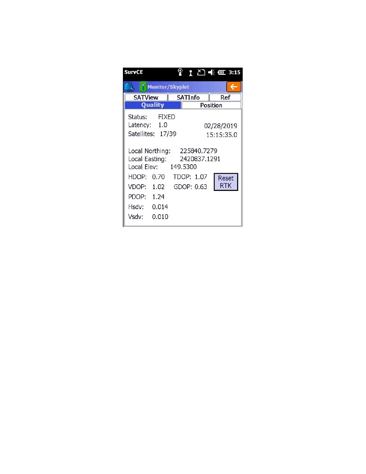 must receive this position record prior to reporting a ‘FLOAT’ solution. You may need to wait for a full 30 seconds.