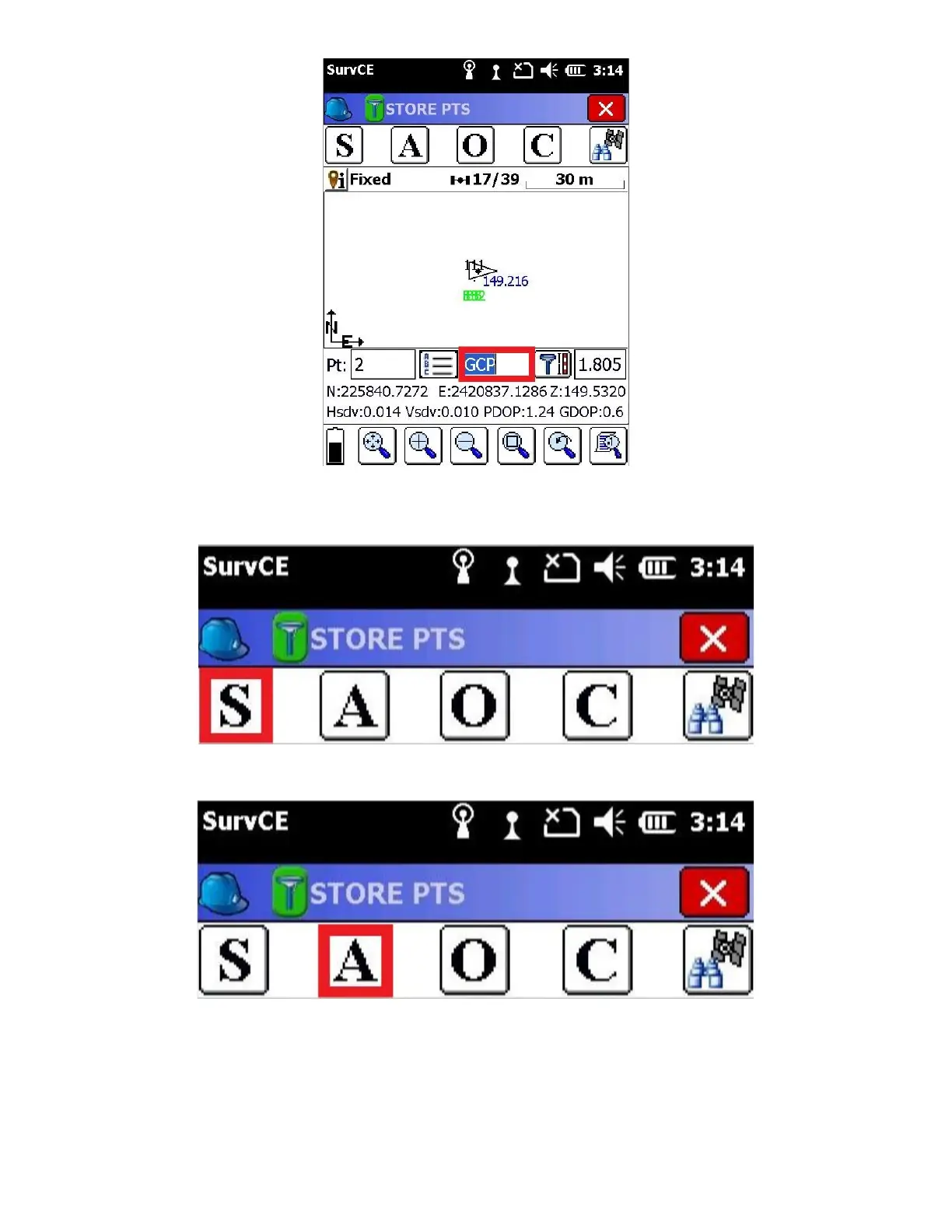 3. The “A” icon (preferred for GCPs) will average multiple epochs into one averaged point stored.