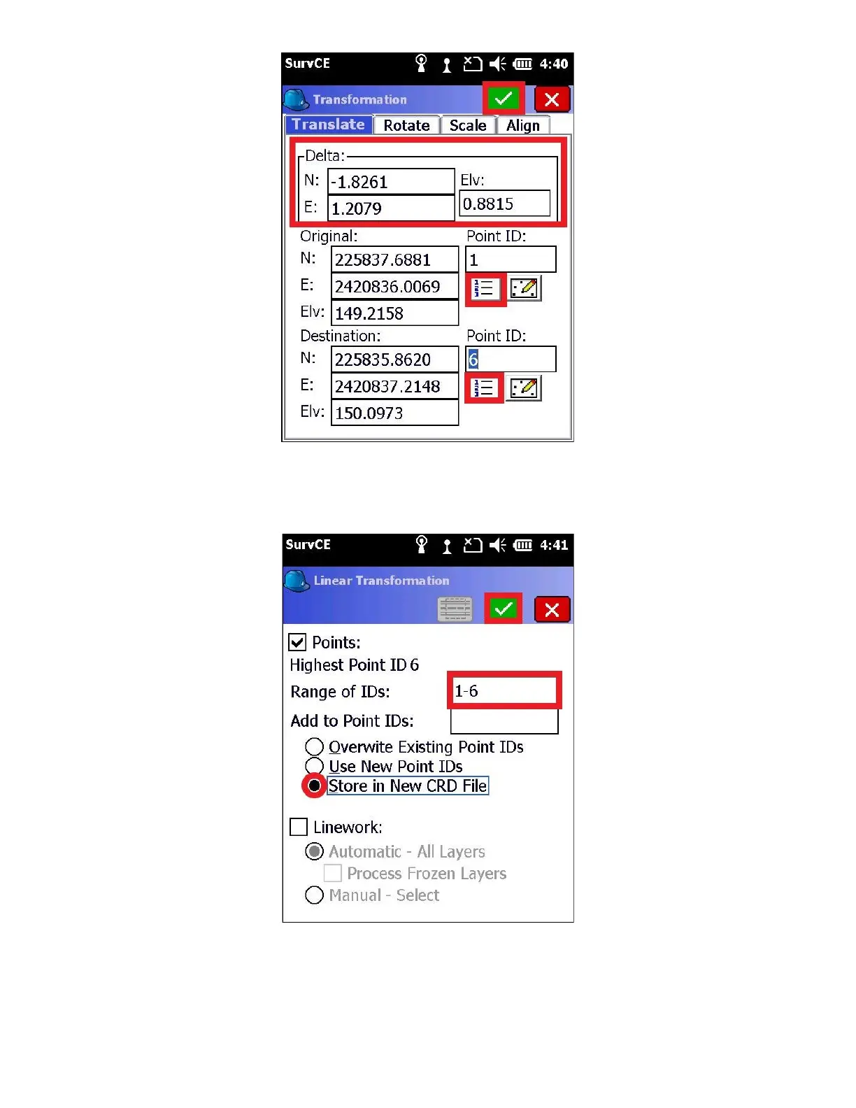 7. Check the “Points” box on the “Linear Transformation” screen, and verify the “Range of IDs” encapsulates all the