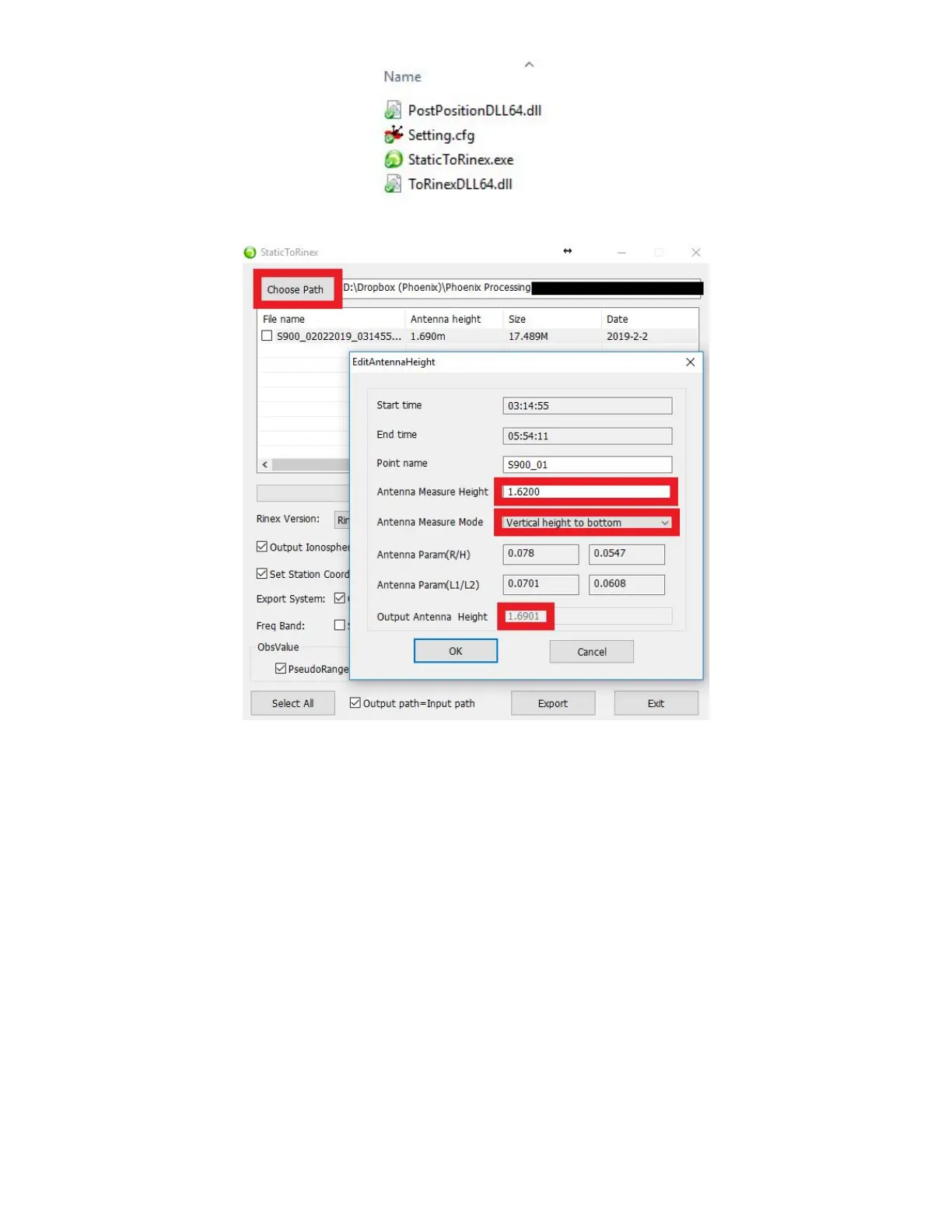 “Output Antenna Height” will be the same, is when “Antenna Measure Mode” is set to “Phase Center”. Click “OK”