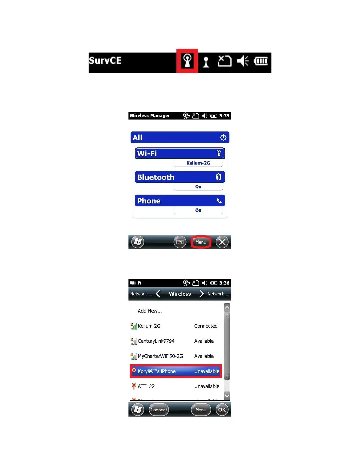 8. From the Wireless Manager, click on “Menu” and then click on “Wi-Fi Settings”