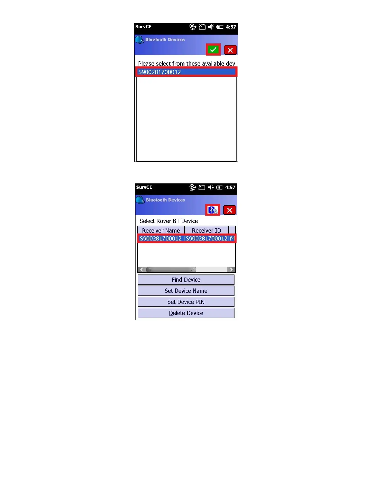 6. With the correct device selected, click on the “Bluetooth Connect” button (looks like Bluetooth icon with cable