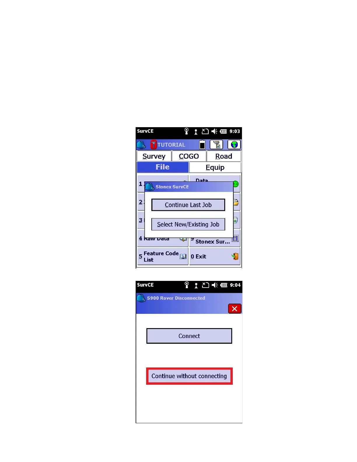 2. When prompted, select either “Continue Last Job” or “Select New/Existing Job”