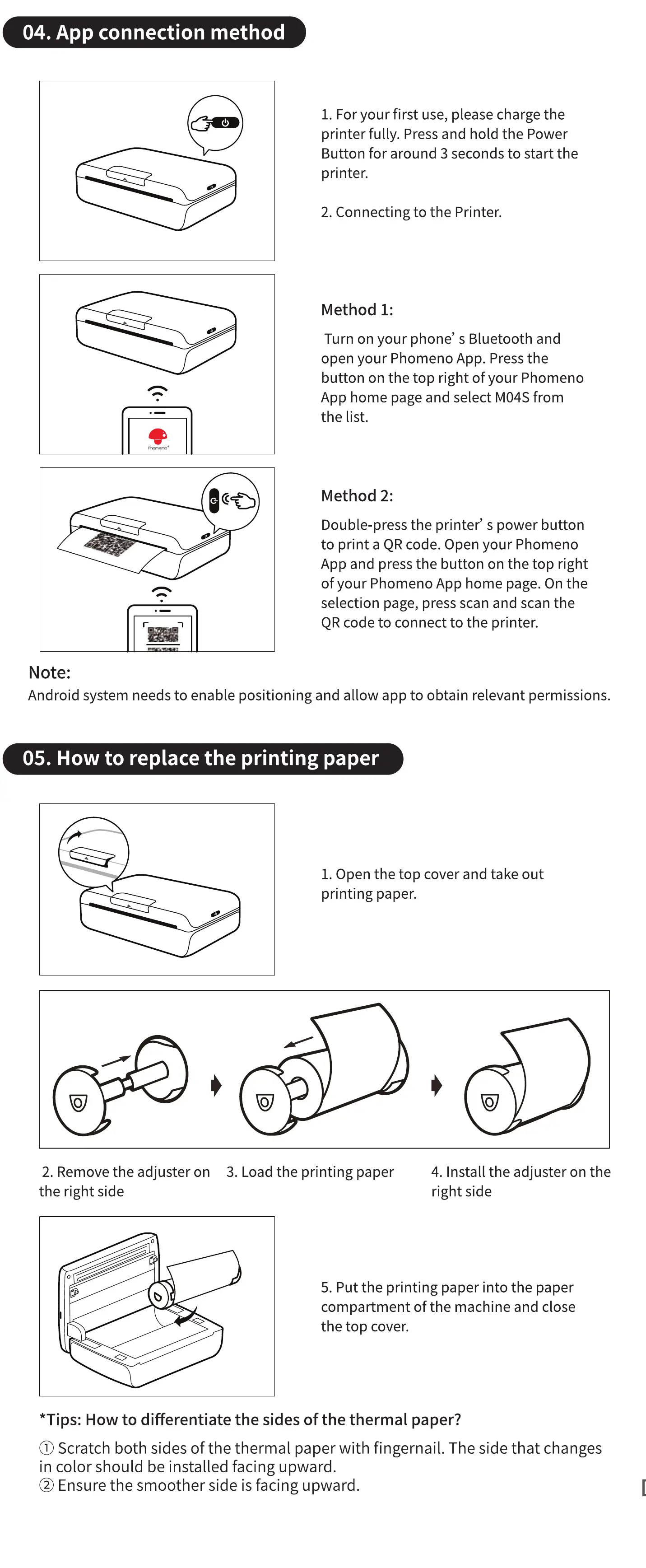 O Scratch both sides of the thermal paper with fingernail. The side that changes