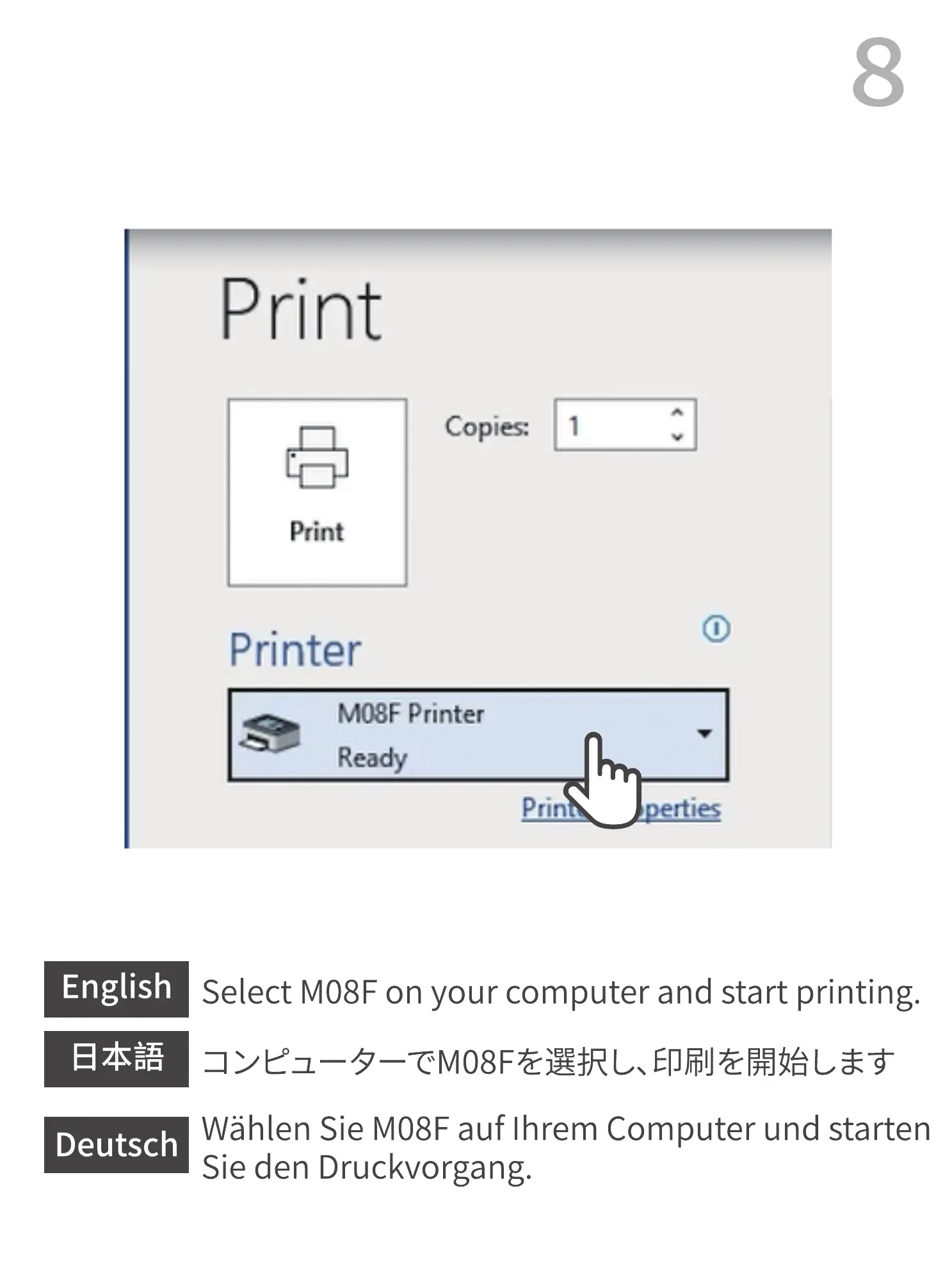 Select M08Fon your computer and start printing.