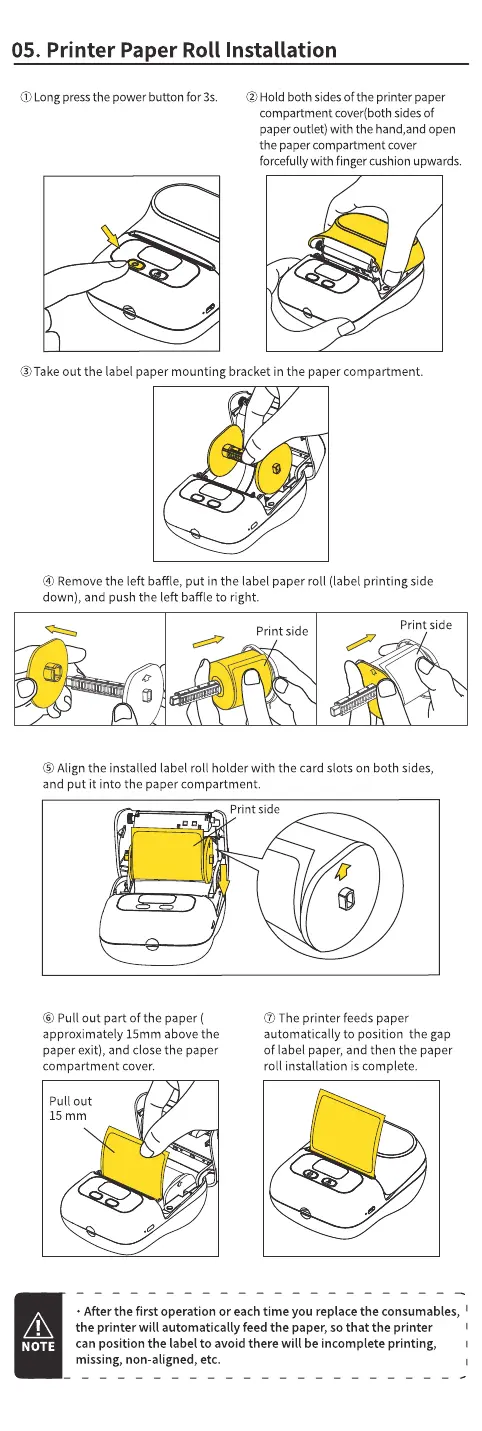 @ Remove the left baffle, put in the label paper roll (label printing side