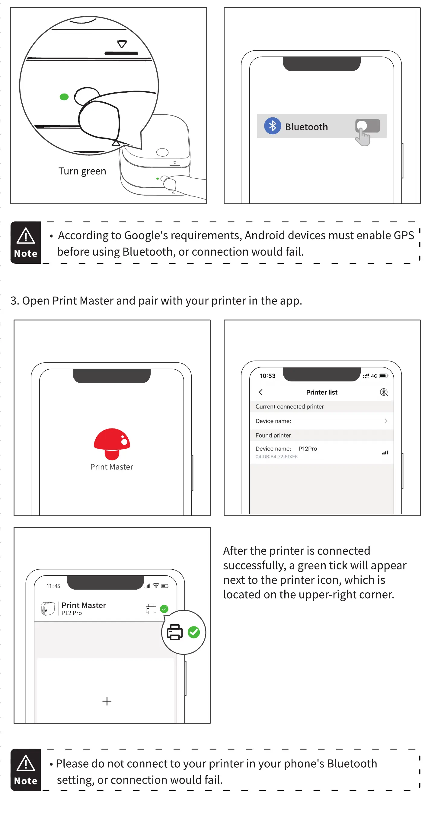 • Please do not connect to your printer in your phone's Bluetooth