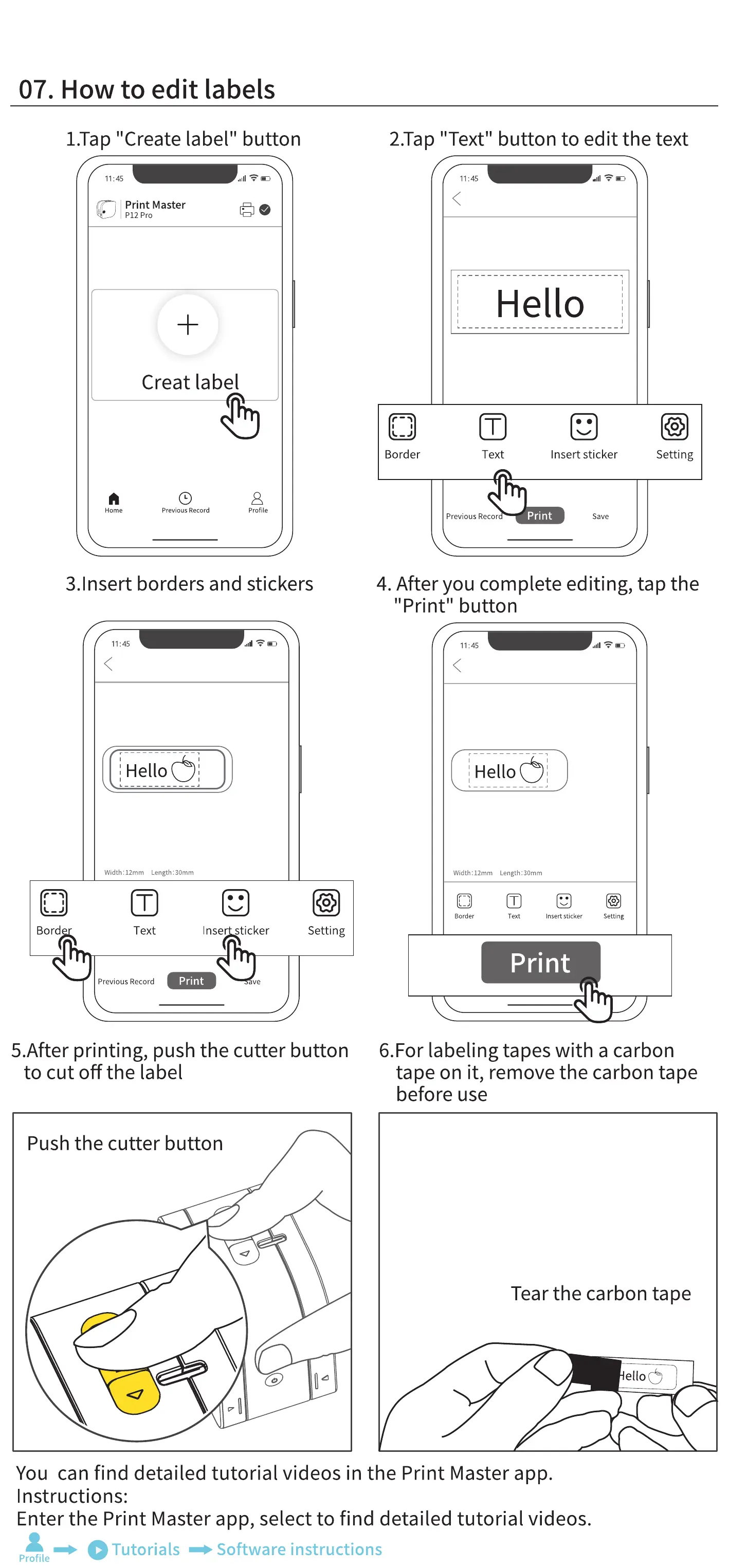 You can find detailed tutorial videos in the Print Master app.