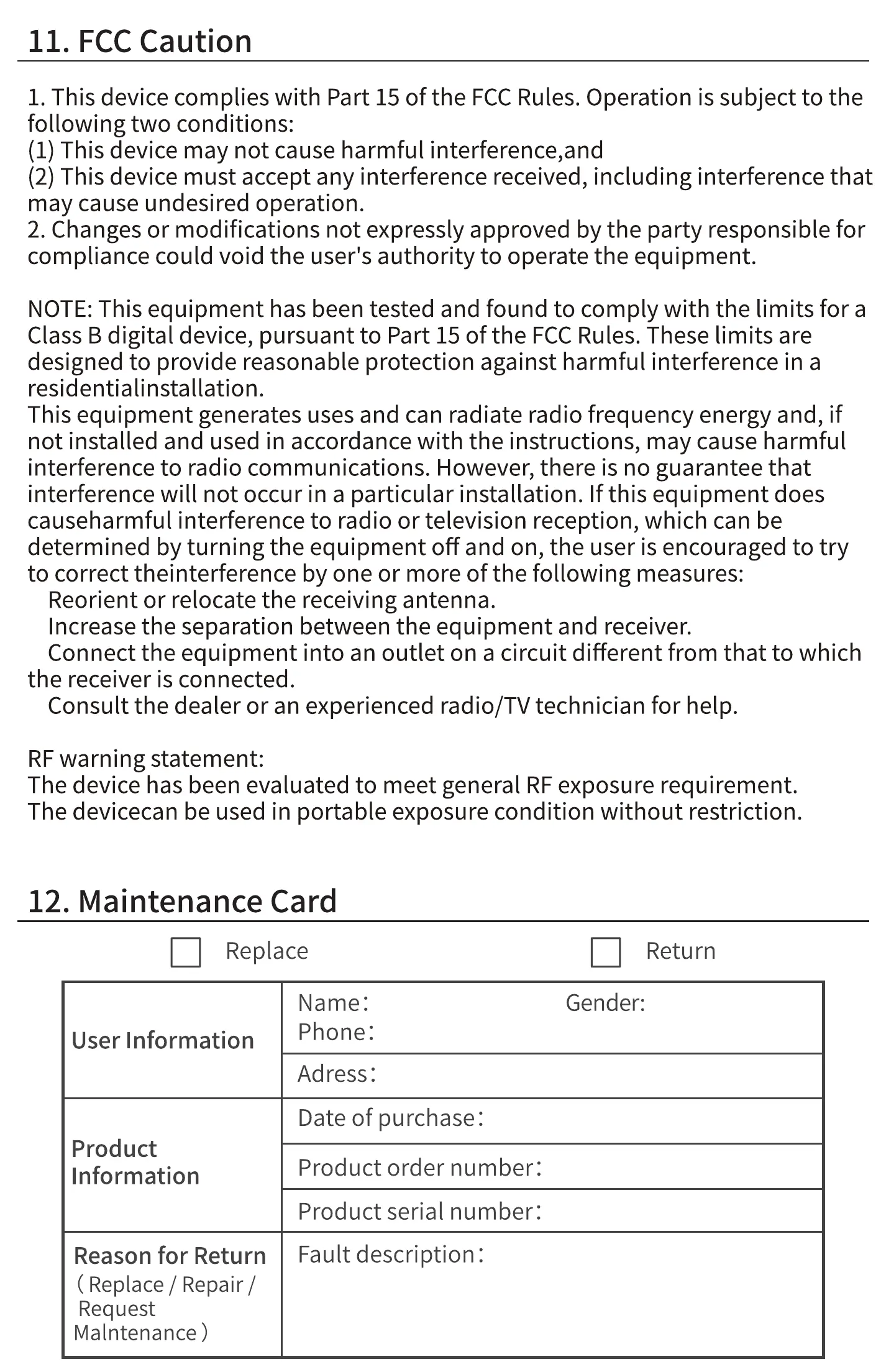 11. FCC Caution