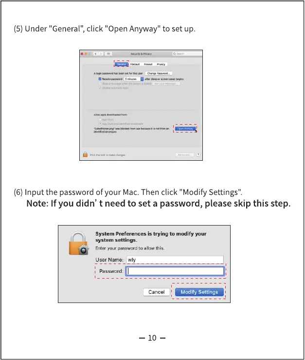 (6) Input the password of your Mac. Then click "Modify Settings".