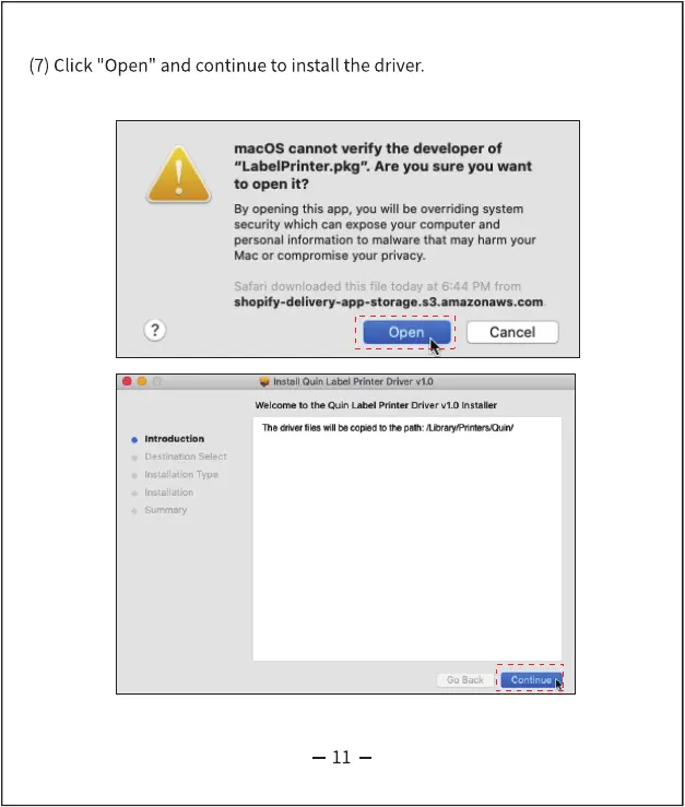 (7) Click "Open" and continue to install the driver.
