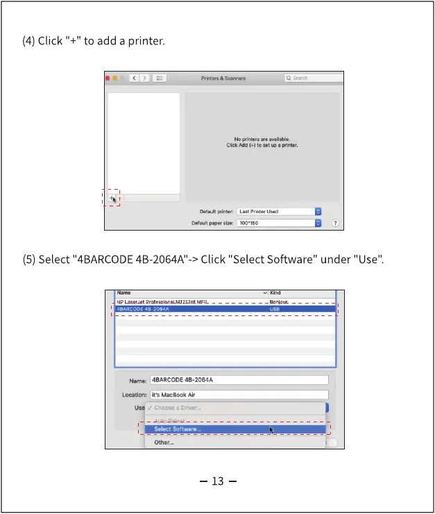 (5) Select "4BARCODE 4B-2064A"-> Click "Select Software" under "Use".