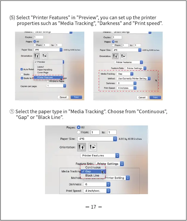 (5) Select "Printer Features" in "Preview", you can set up the printer