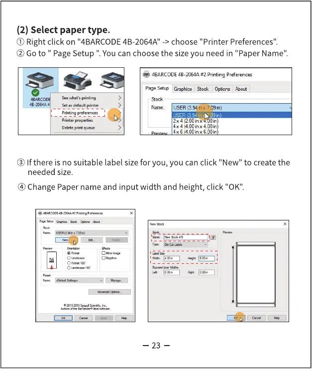 (i) Right click on "4BARCODE4B-2064A"-> choose "Printer Preferences".