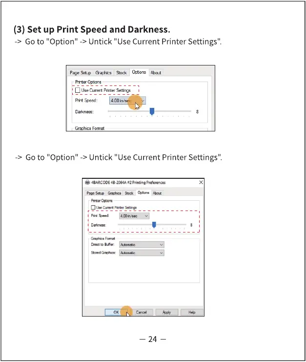 (3) Set up Print Speed and Darkness.