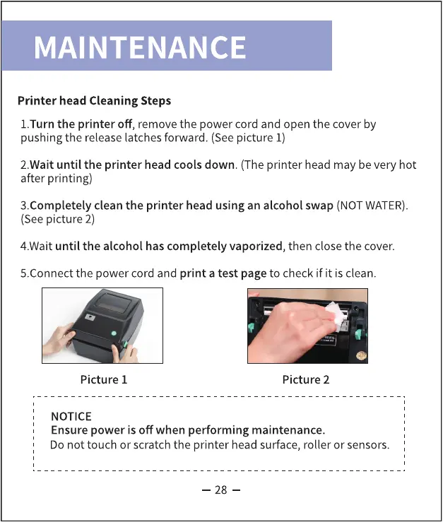 3.CompIeteIy clean the printer head using an alcohol swap (NOTWATER).