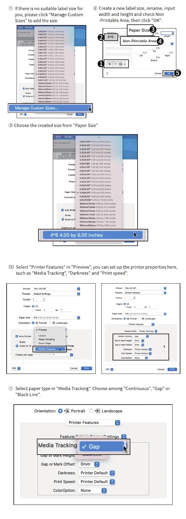 (j) Select paper type in "Media Tracking".Chooseamong "Continuous","Gap" or
